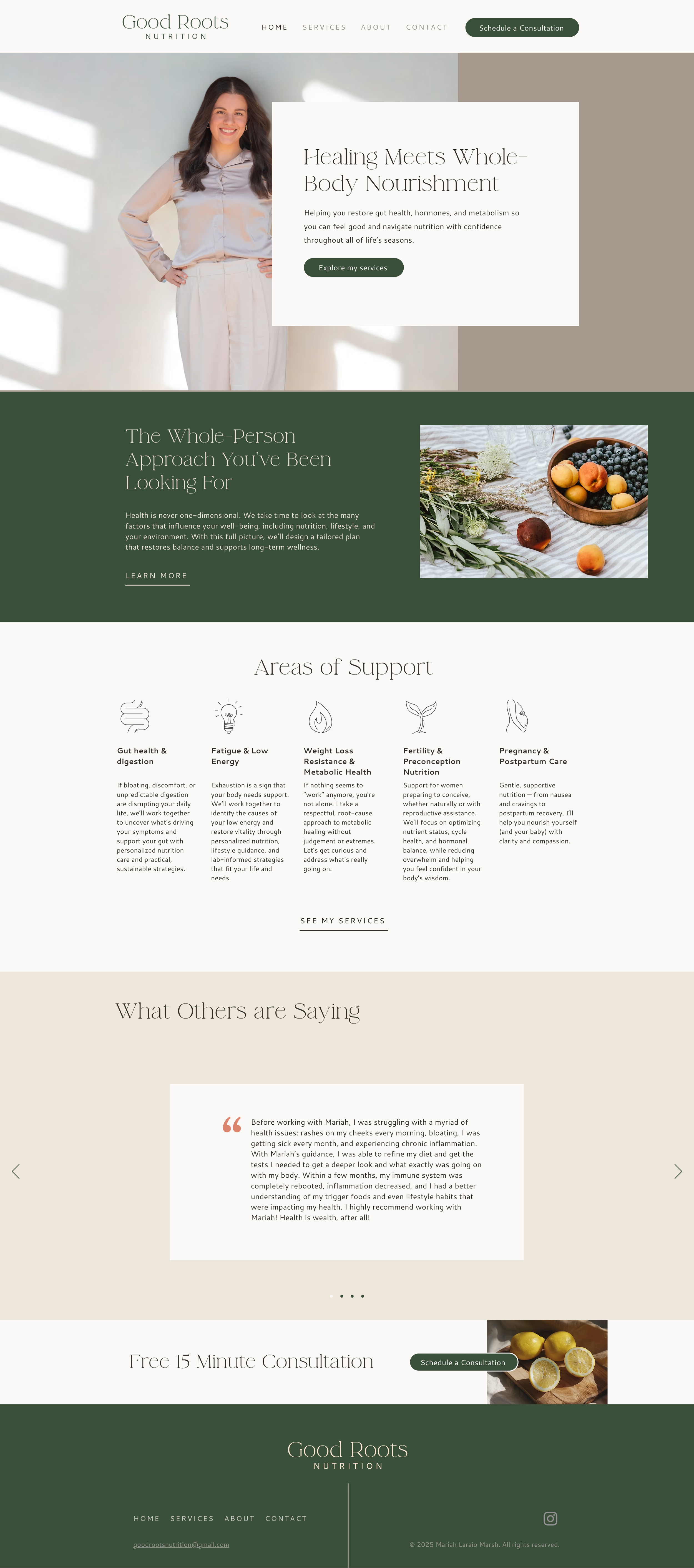 The client reached out to create a website for their nutritionist business. We worked on their branding a bit too, creating brand system that feels like the client - professional, but caring and warm, wanting their clients to experience real health.